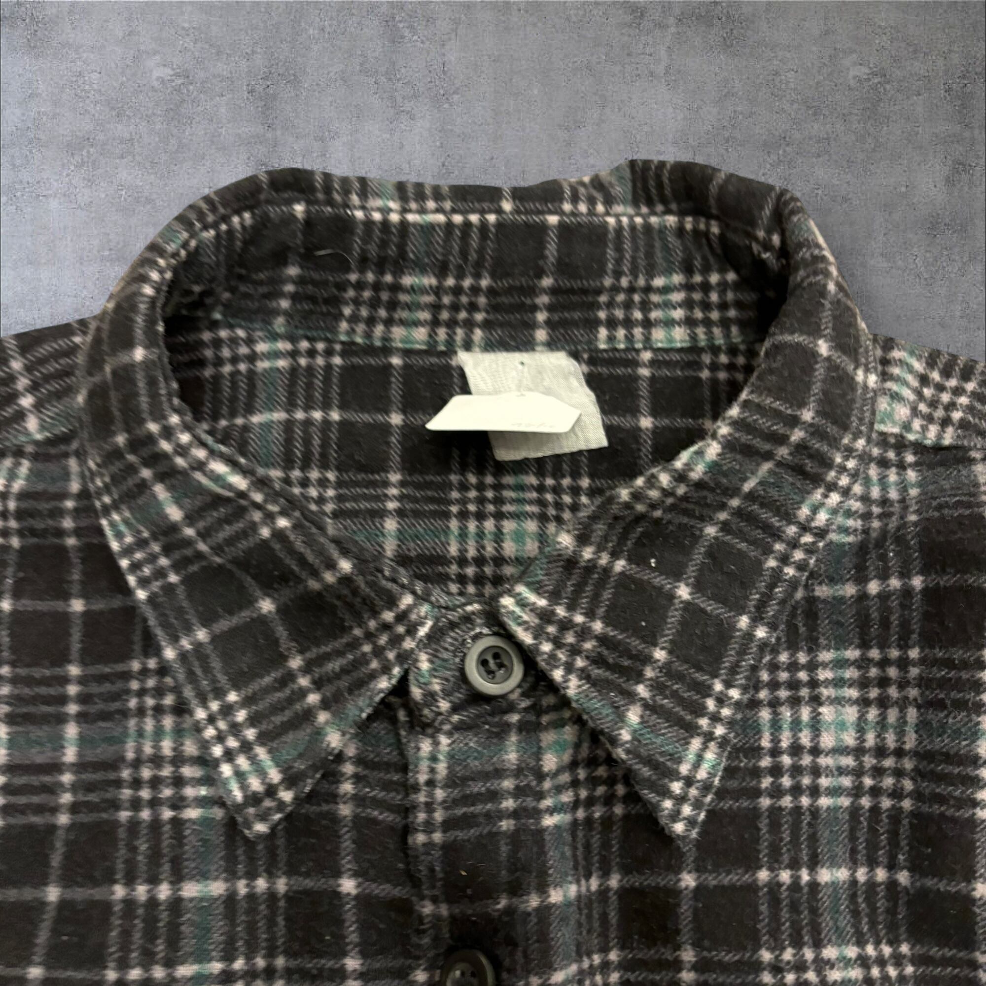 この手の90年代のシャツはラウンドがキツく着丈長い個体が多い印象ですが、こちらは綺麗なボックスシルエット。