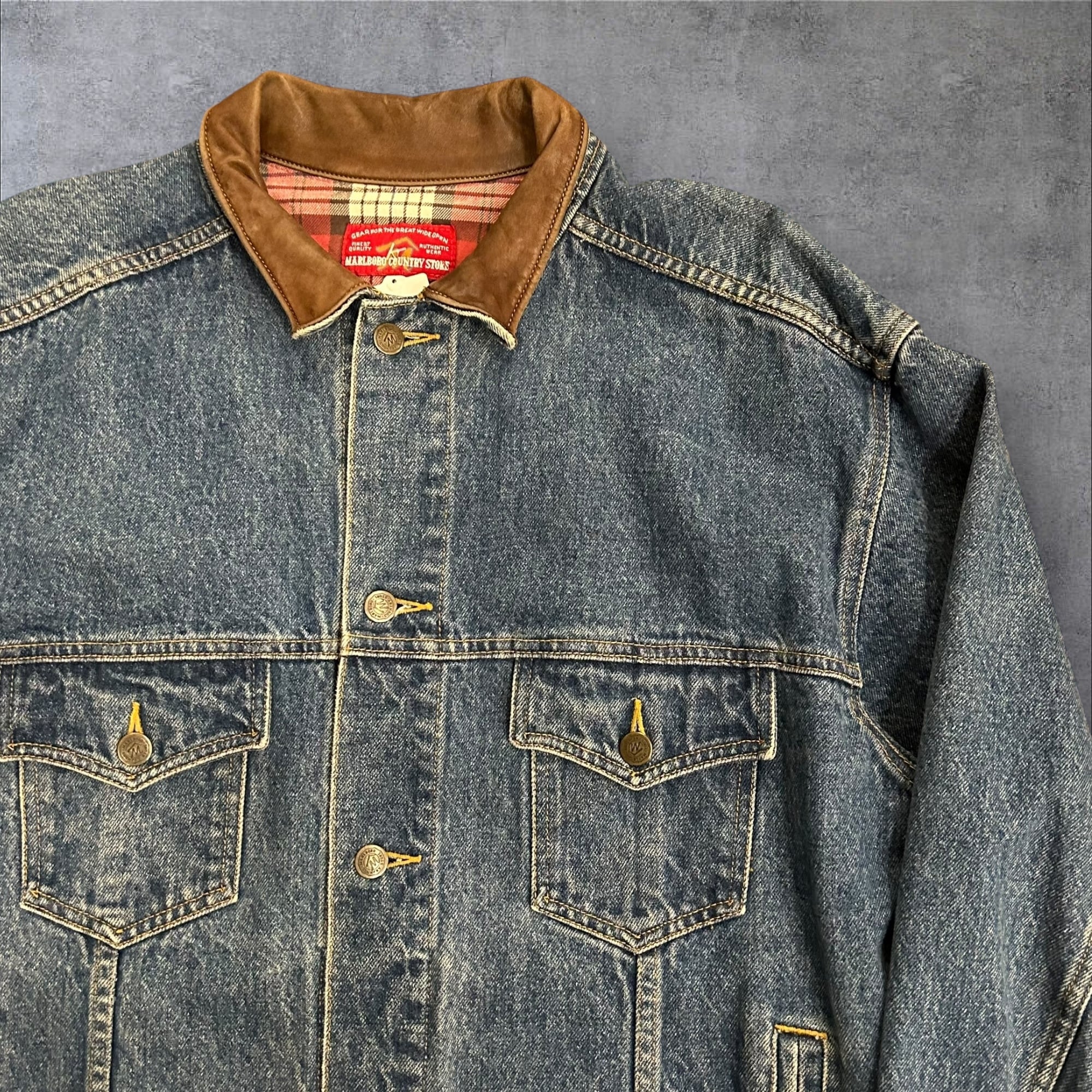 【レザー切り返し】90's Marlboro Country Store Denim Jacket