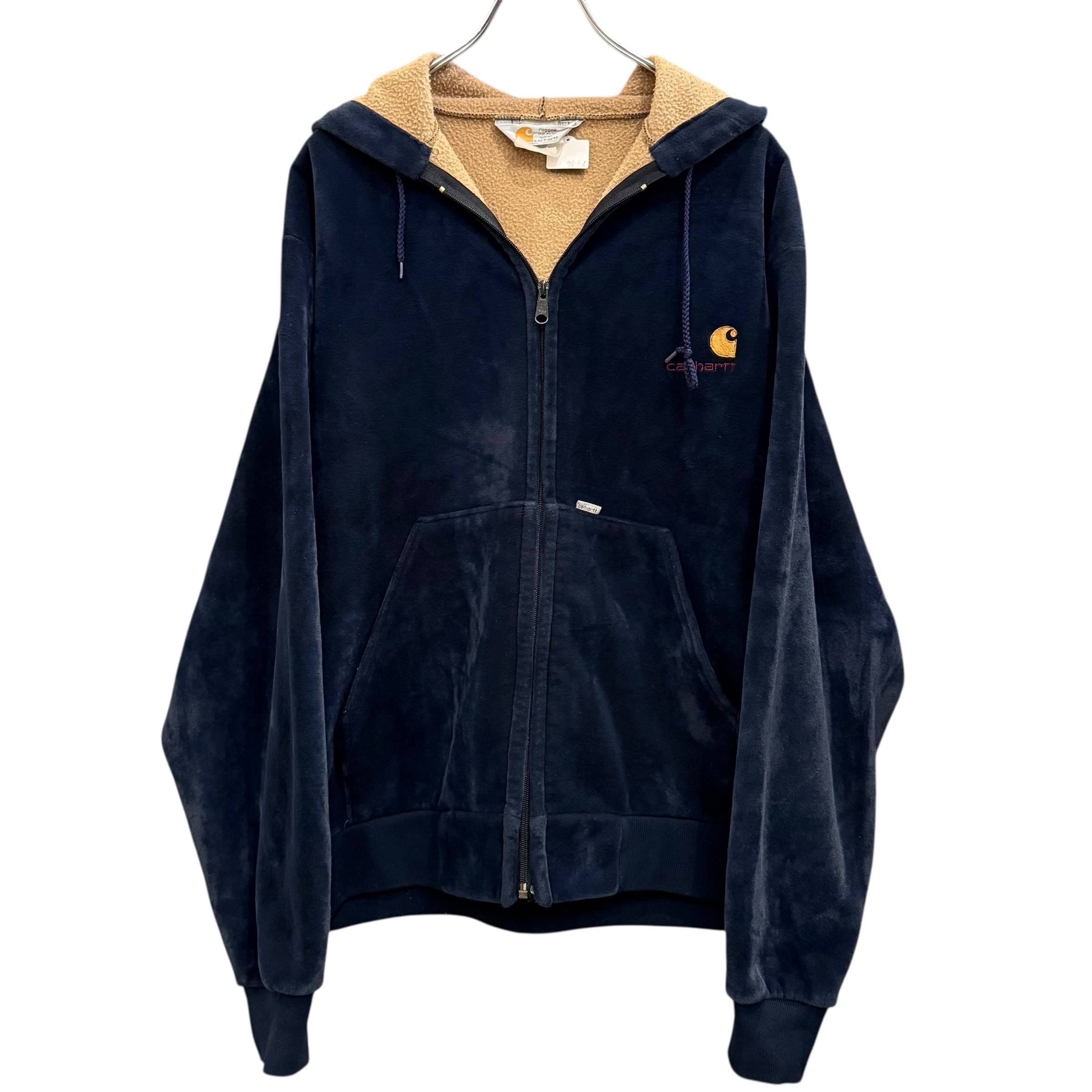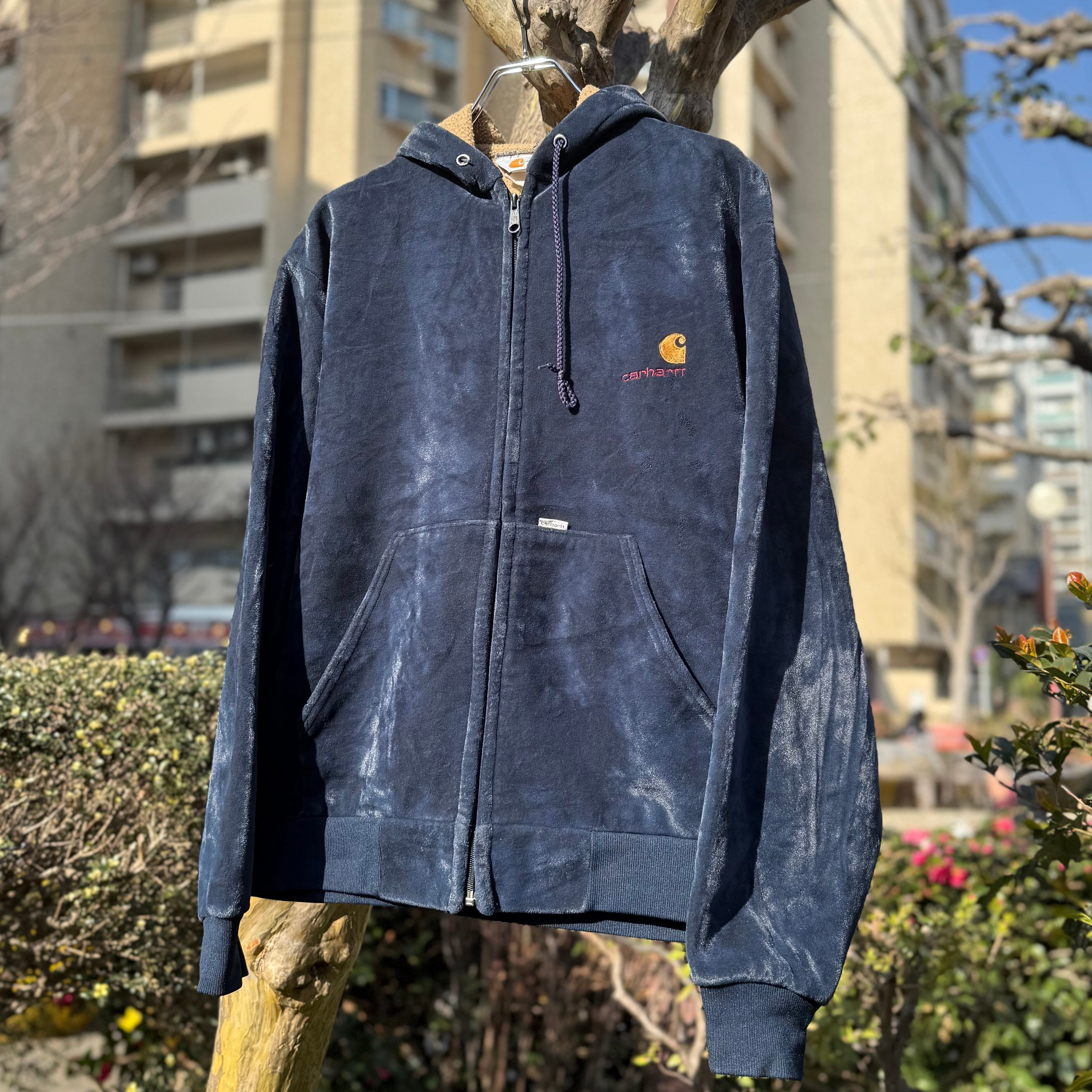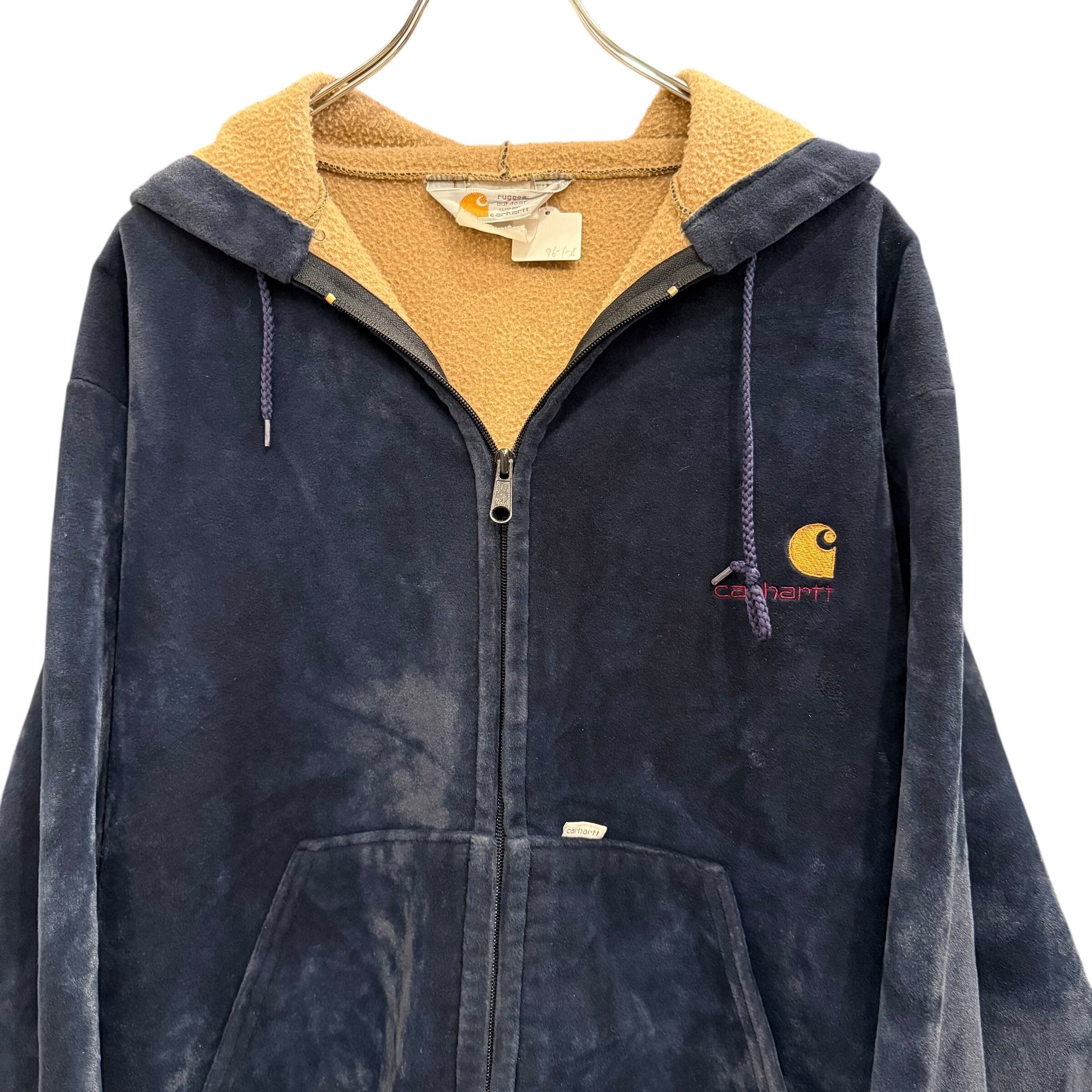 【Navy】80's Carhartt Velor Zip up Hoodie