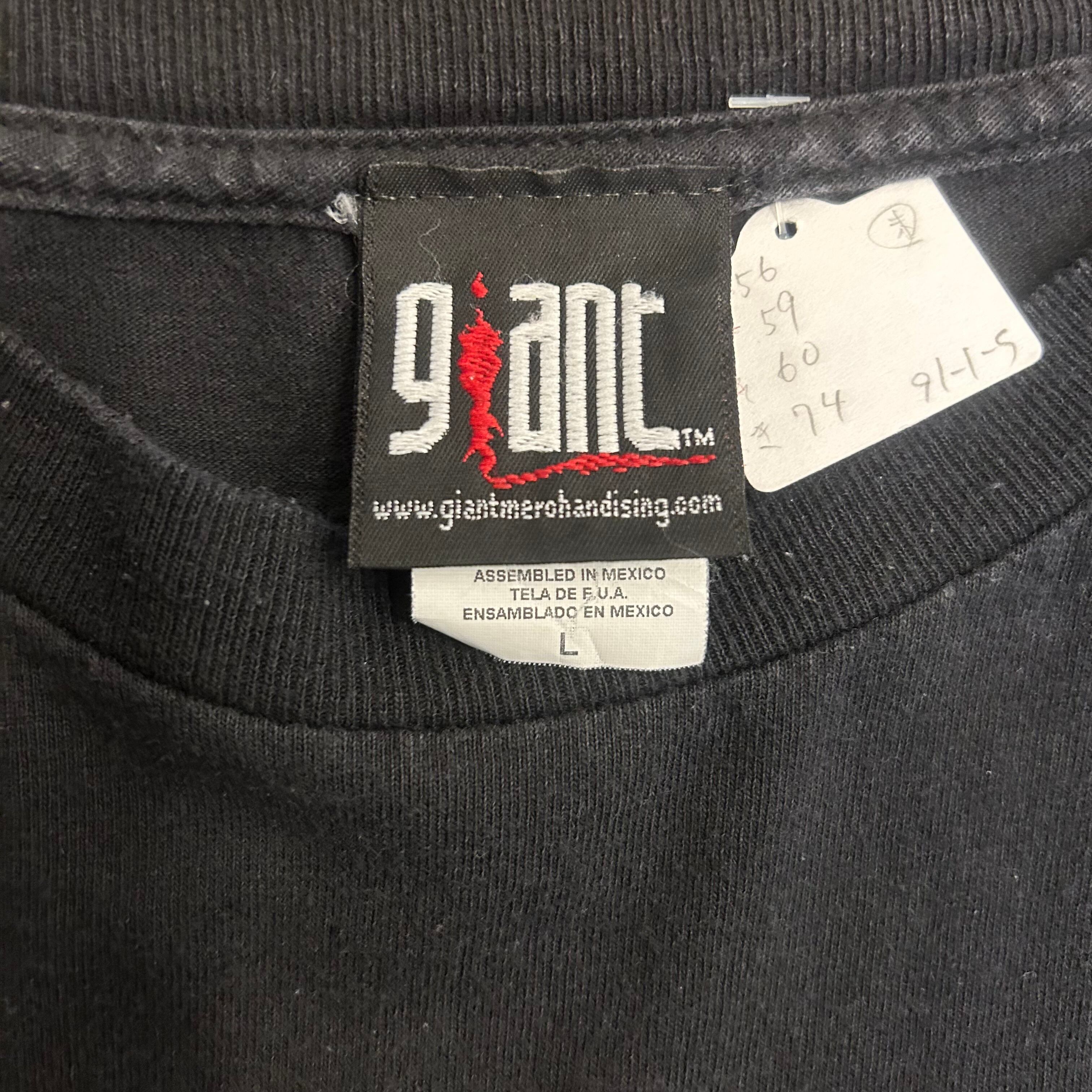 バックにはバンドTシャツでも珍しい腰にプリントが入ります。
