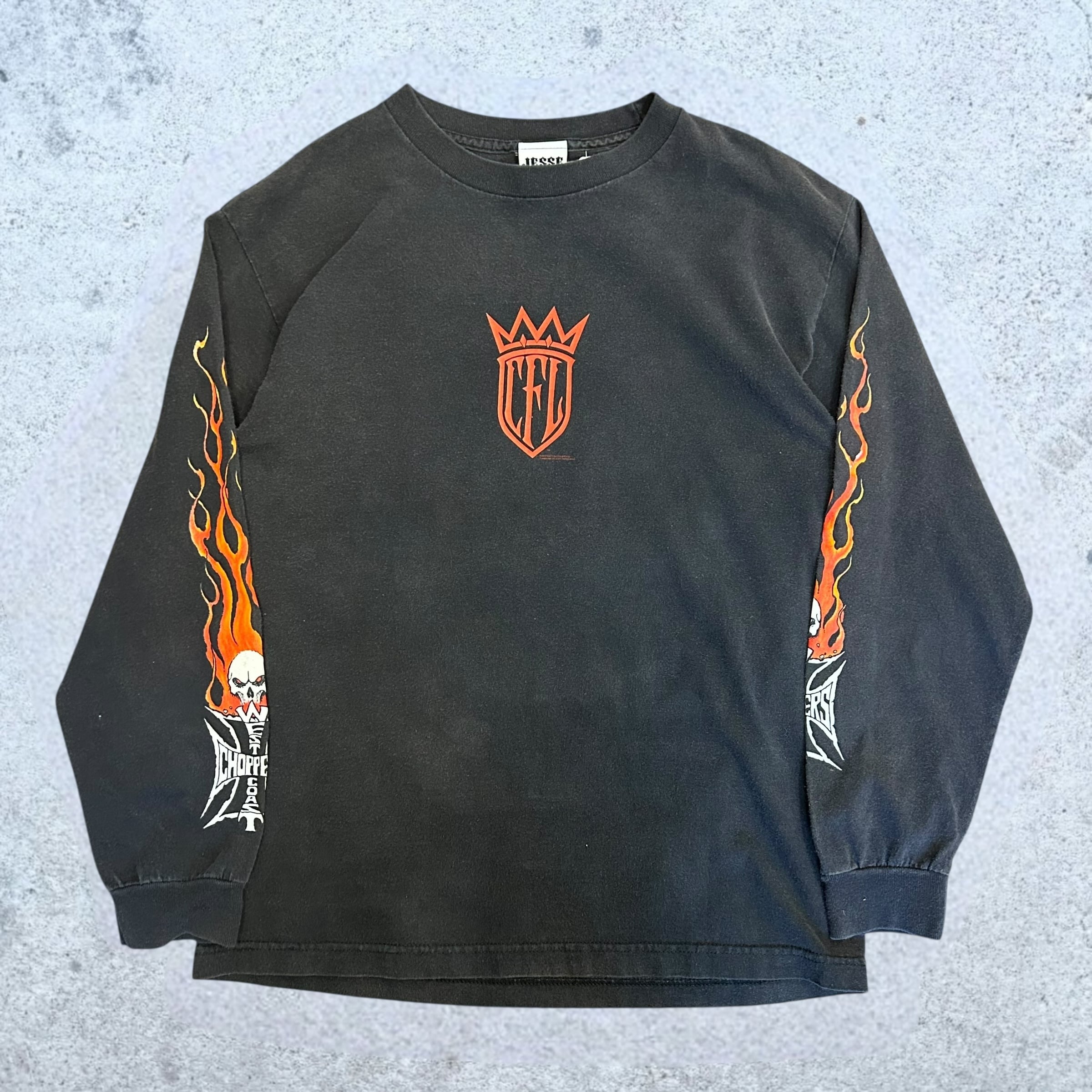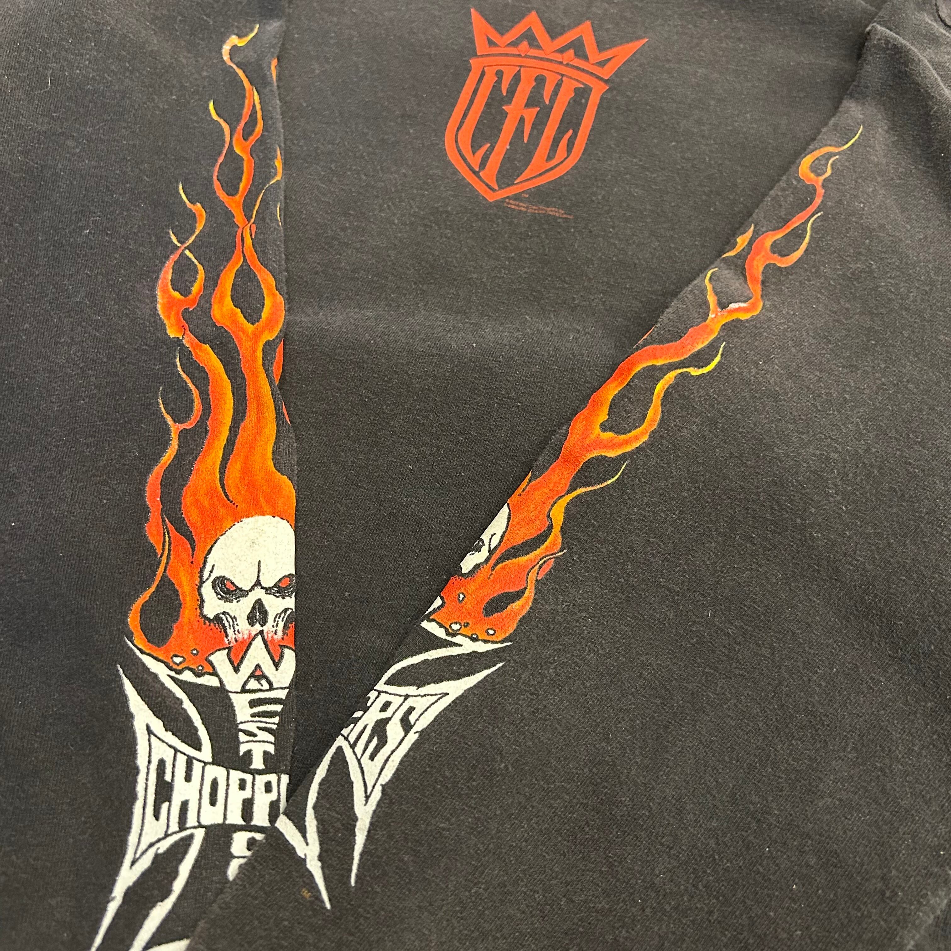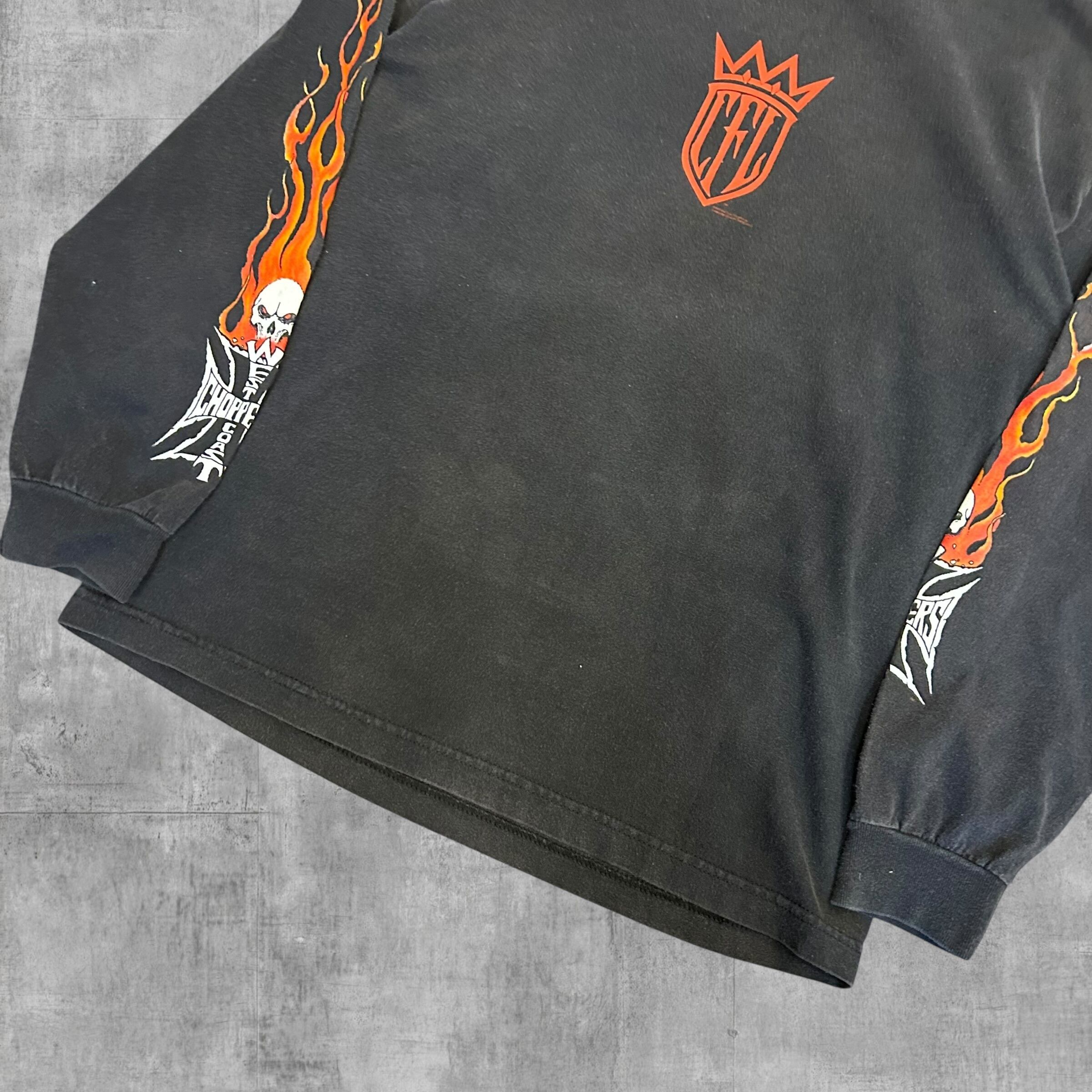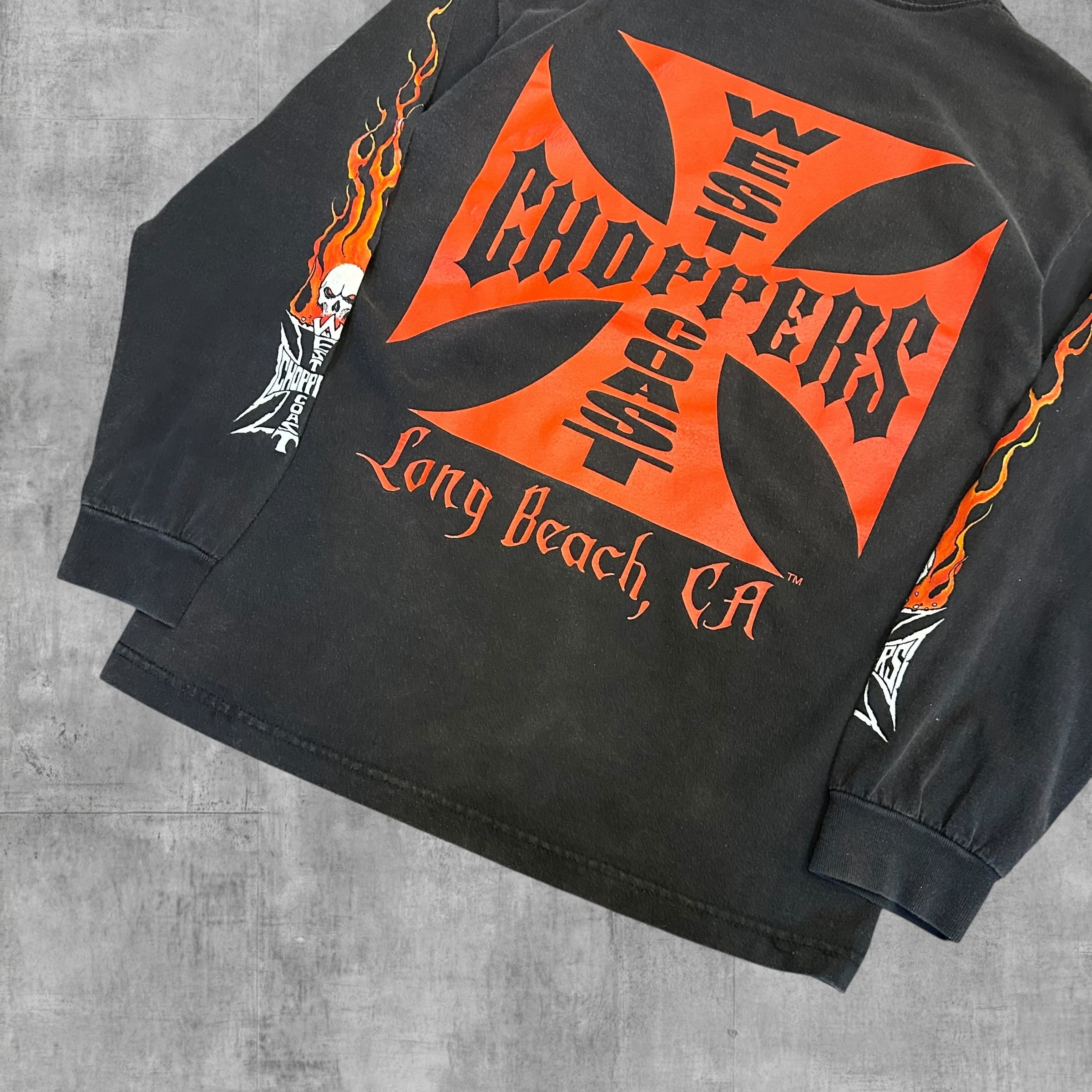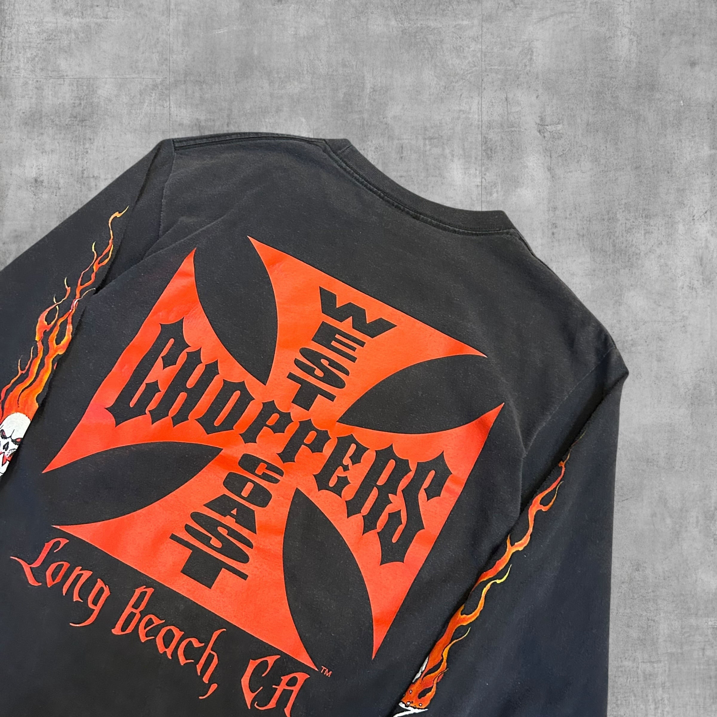 【アメカジ個体】90’s West Coast Choppers Long Sleeve “Flaming Arm Skull Red Cross”