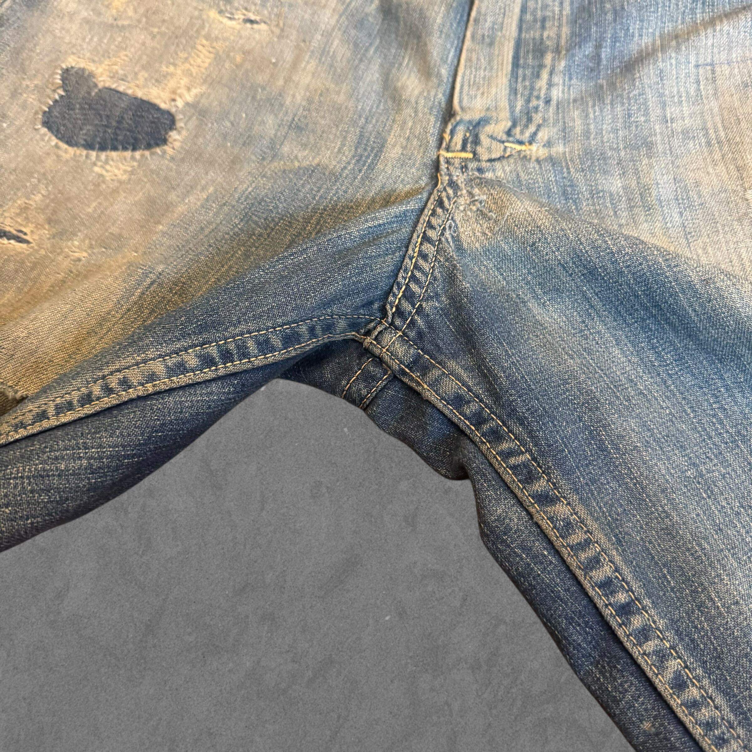 荒々しい色落ちの効いた極上ボロコンディション。