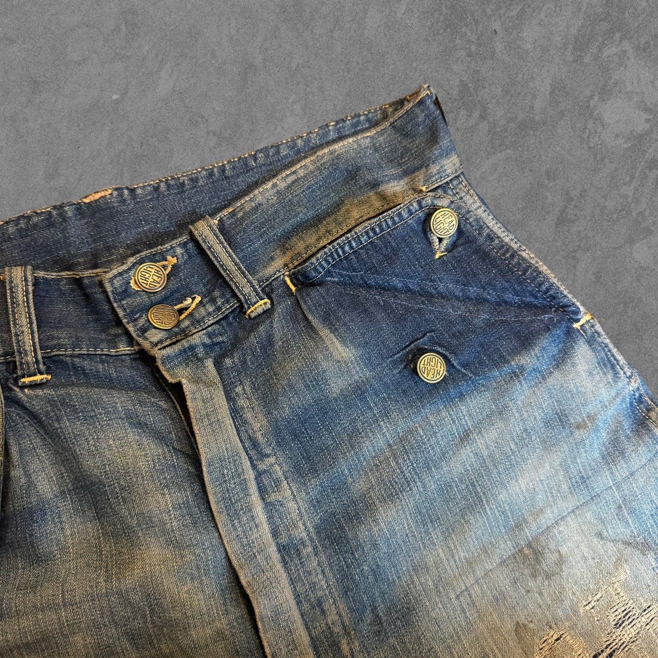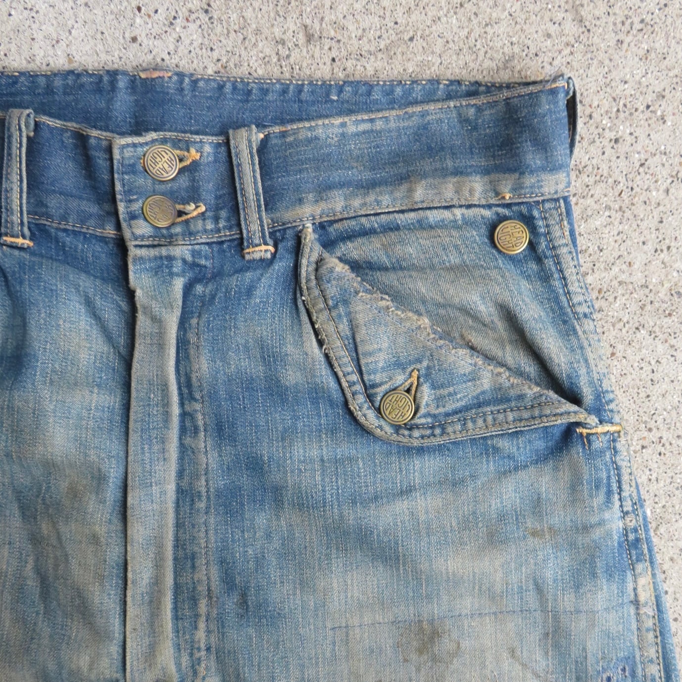 希少なヘッドライト製のデニムパンツ。