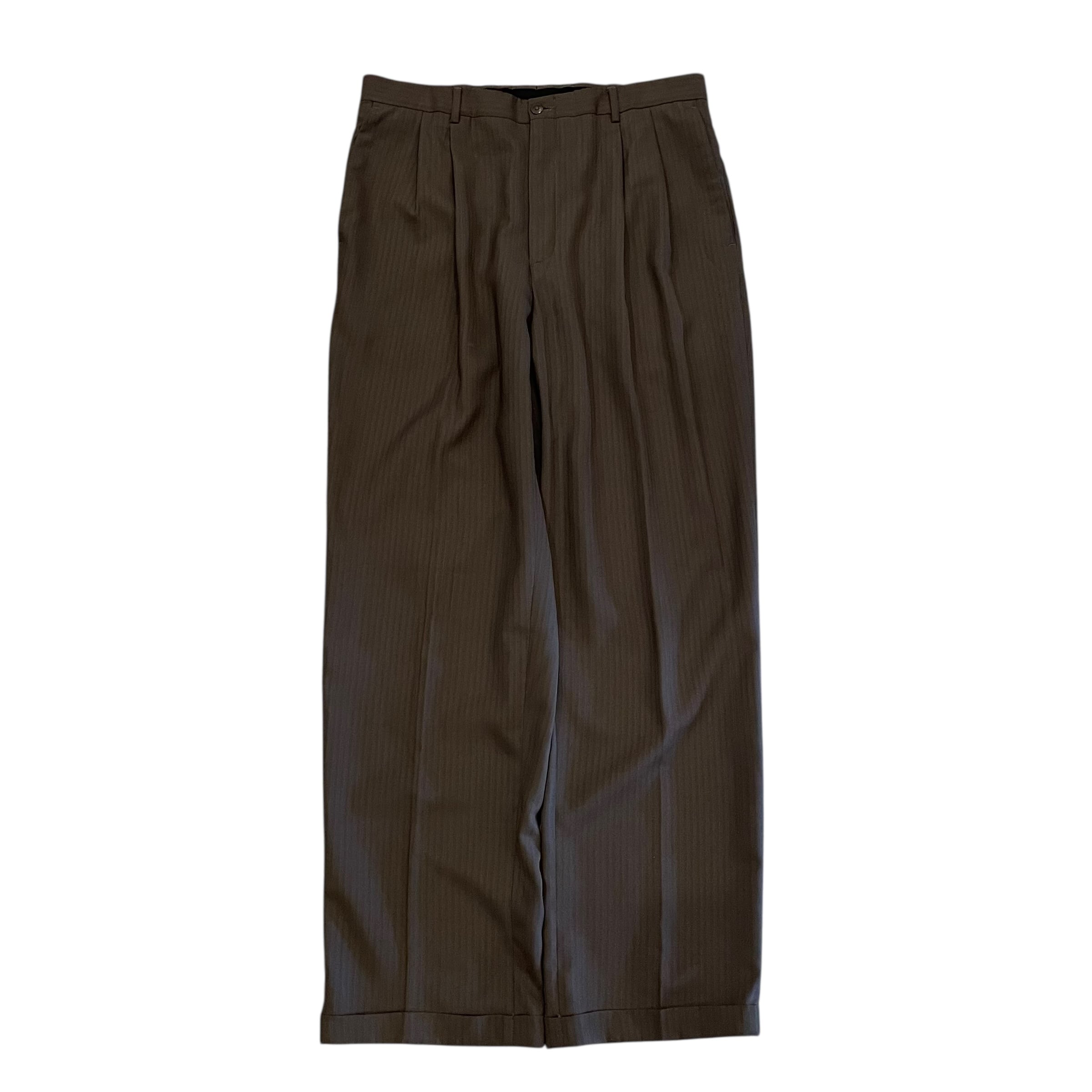 【カーキ×ストライプ】00's Claiborne Stripe 2tuck Slacks