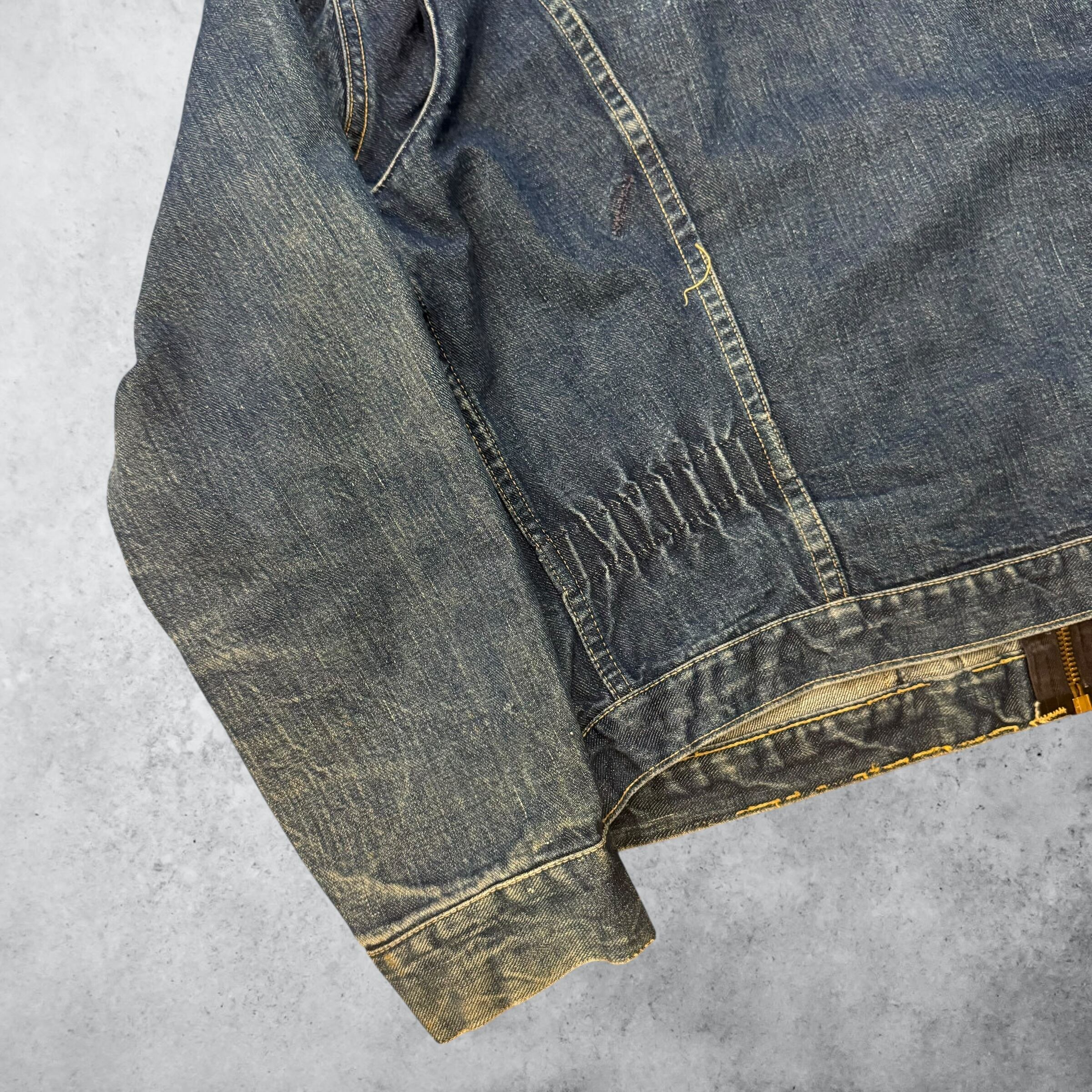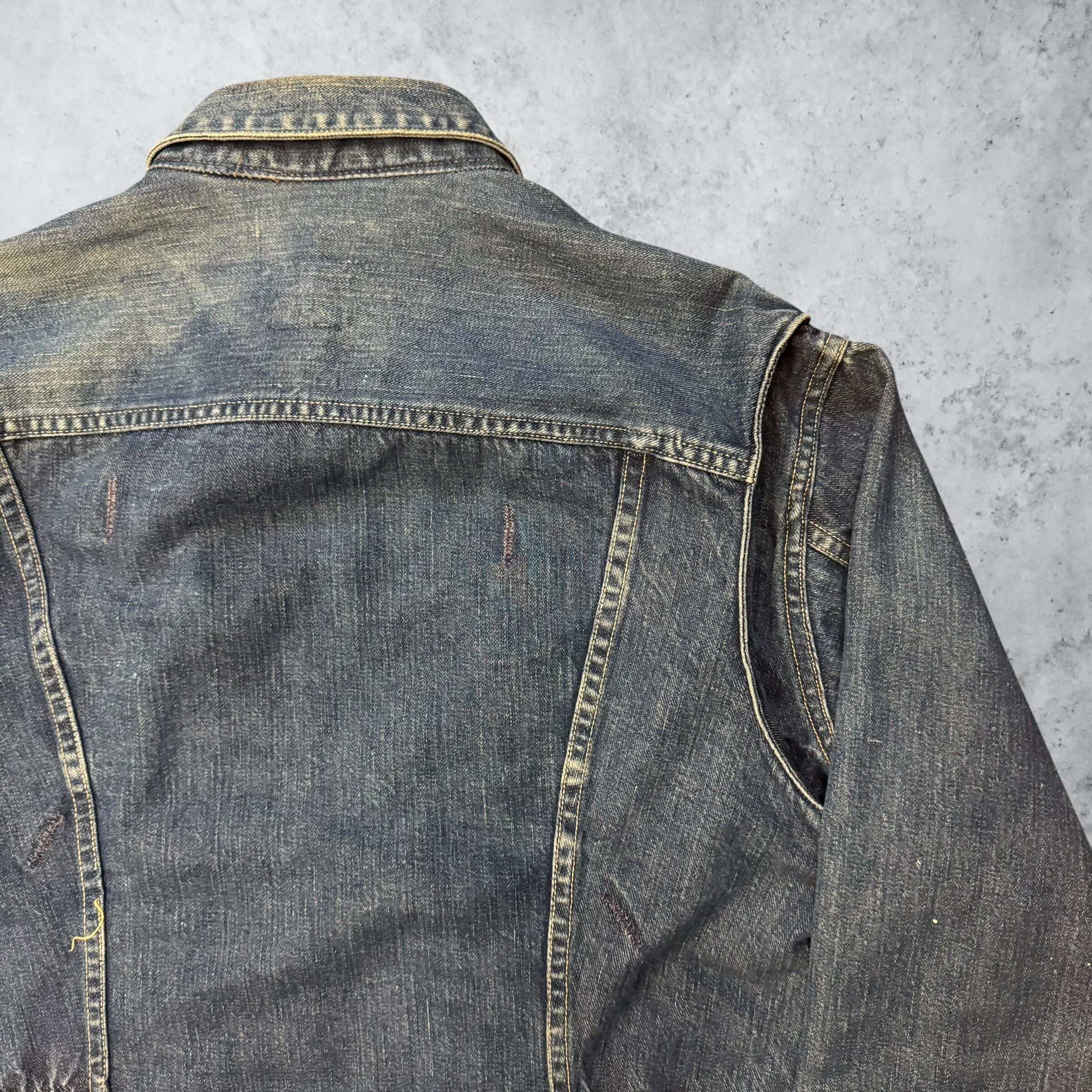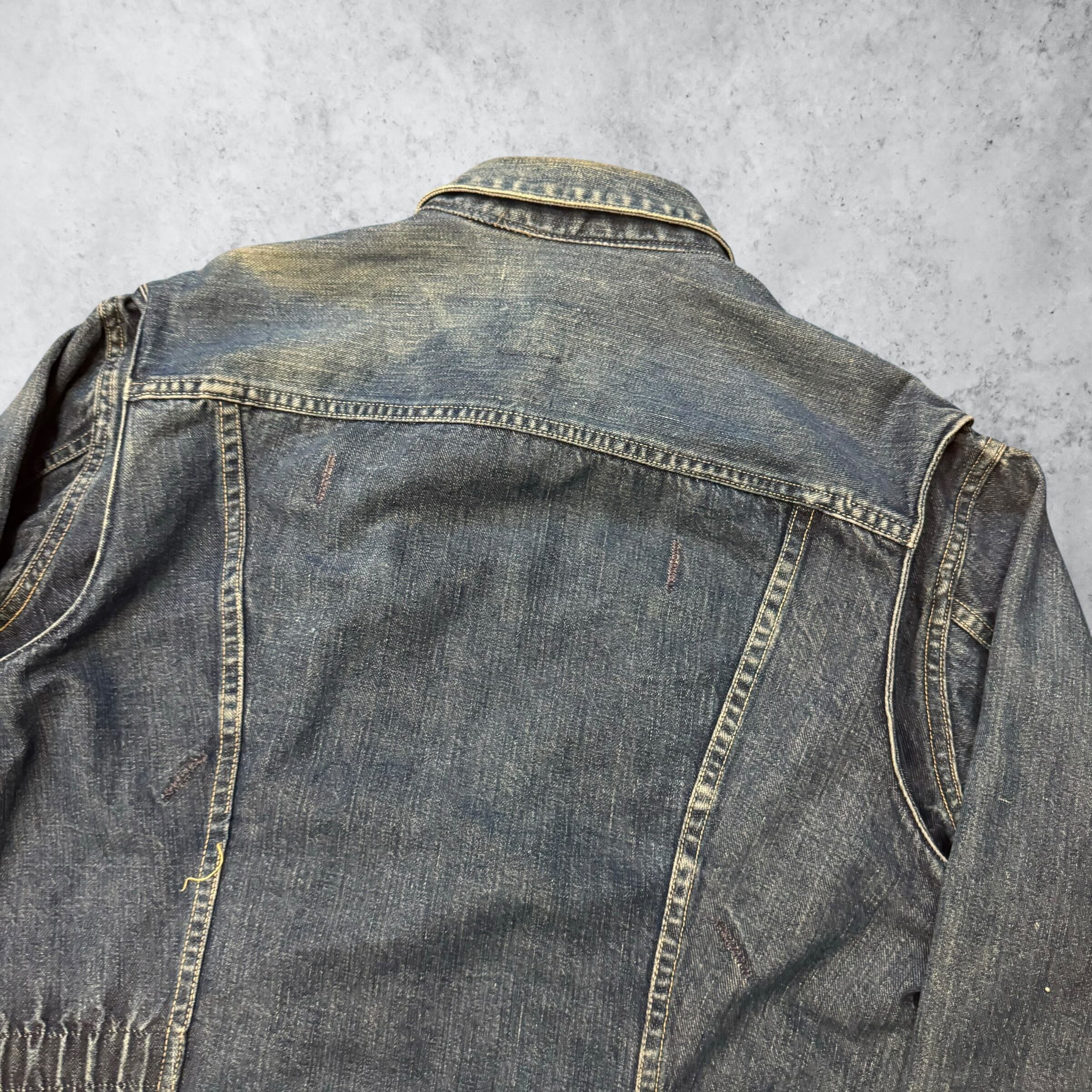 当時、三代デニムブランドでは唯一デザイナーを起用しており、そういった背景が実用性とデザイン性を兼ね備えた唯一無二なジャケットを生み出しました。