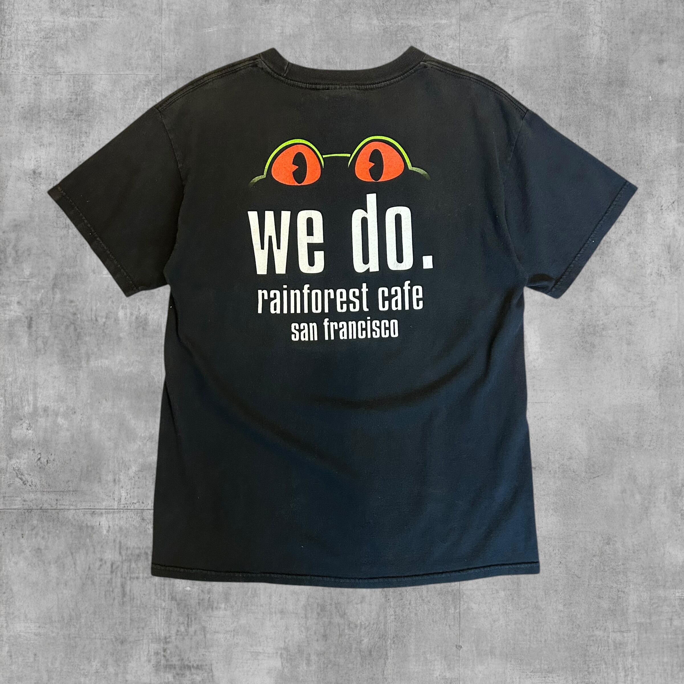 バックプリントに赤目のカエルがプリントされ