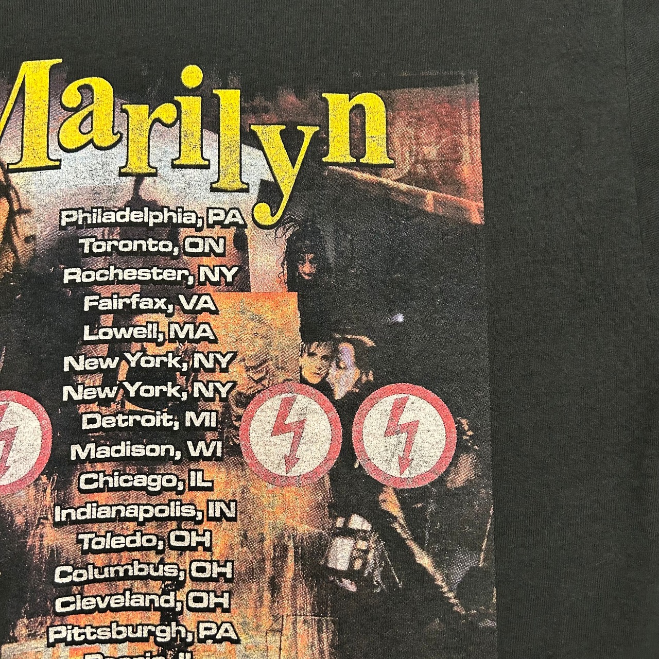マンソンのブートは全面プリントやマンソンのみのTシャツが多い中、プリントも大きすぎず他のメンバーがいる珍しいものになります!