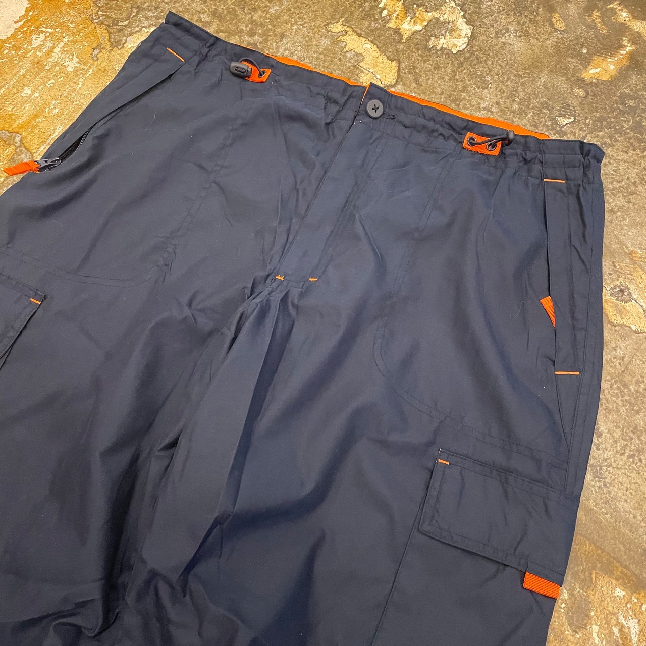 ウエストはドローコードで調節可能という機能性とラフさを持ち合わせており色味もネイビーメインの差し色オレンジという神配色!!