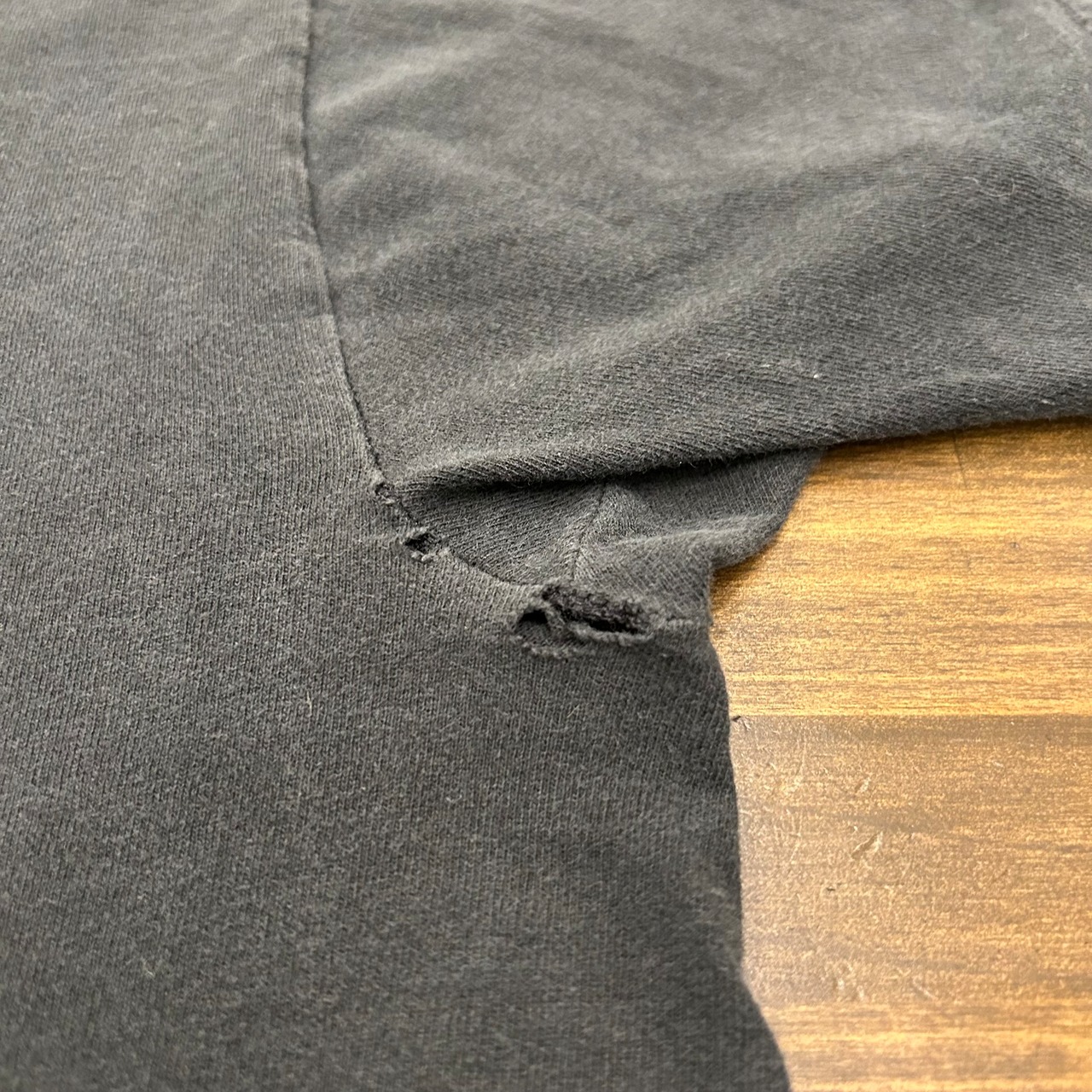 両肩、両脇、右脇腹、右袖、背面裾付近にピンホールあり。